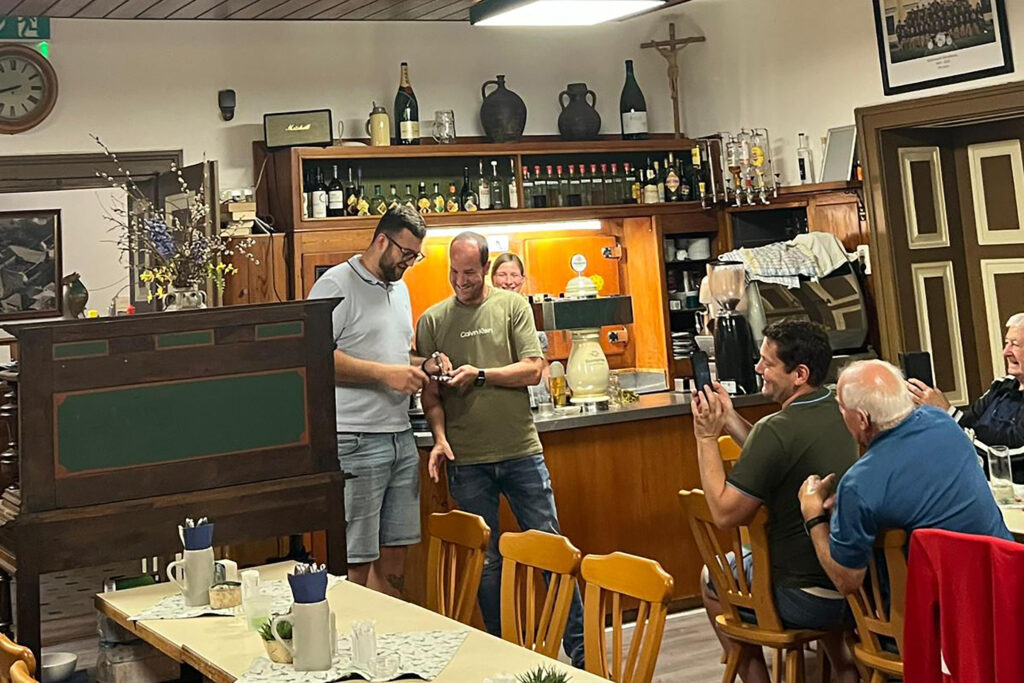 Daher ging heuer der „Schrauben“ als Symbol der Niederlage wieder an uns Burschen. Überreicht wurde uns dieser beim Kirchenwirt wo wir uns die Jause, Leberkäse in Saft, schmecken ließen. Den Abend ließen wir, bei ein paar Getränken mit den ehemaligen Burschenbrüdern, ausklingen. Denn das Zusammensein von Jung und Alt ist das Highlight eines jeden Ledigenverheiratenspiels.