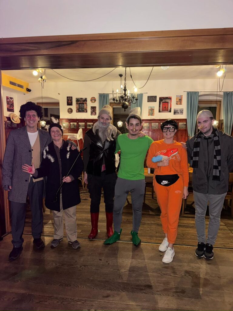 Die diesjährige Hausparty fand unter dem Motto „Bösewichte” statt. Gemeinsam mit unseren Tanzpartnerinnen trafen wir uns verkleidet im 12er-Zimmer beim Kirchenwirt.