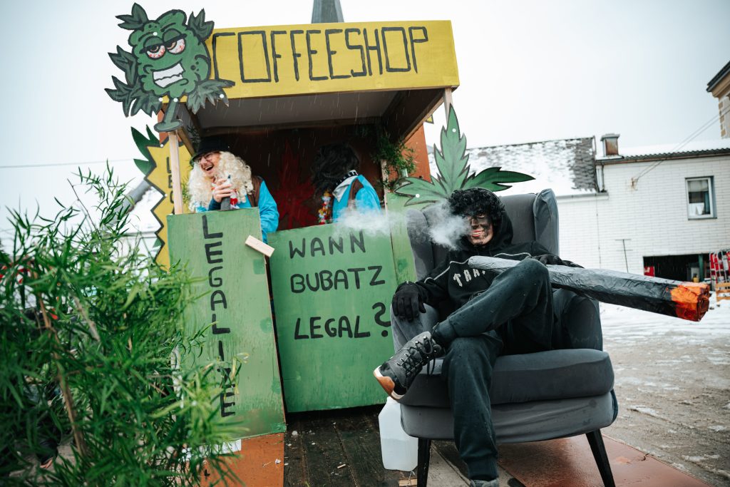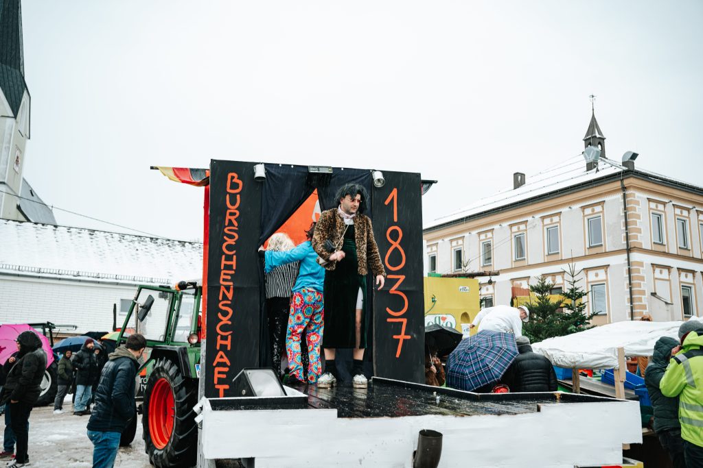 Im Laufe der Jahre fanden auch die restlichen Burschen Gefallen daran und ließen so zur Jahreswende 1879/80 den “Blauen Montag” entstehen. In dieser Zeit liegen auch die Anfänge des heutigen “Aussingens”. Mit der Zeit entwickelte sich aus dem nicht organisierten Umhertreiben ein geregelter Ablauf, der in dem heute weithin bekannten “Blauen-Montag-Umzug” seine Vollendung fand. Heute lässt sich der “Blaue Montag” grob in zwei Abschnitte teilen: Am Vormittag ziehen die Burschen paarweise von Haus zu Haus und versuchen durch Vorsingen einzelner Strophen aus der Moritat diese an den Mann zu bringen. Der Nachmittag ist voll und ganz dem Umzug gewidmet, bei dem die durch harte Knochenarbeit entstandenen Wagen der Öffentlichkeit präsentiert werden. Gezeigt werden aktuelle Themen oder einfach nur Lustiges – und das mit viel Action.