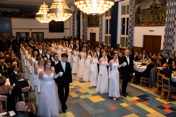 20.00 Uhr Einmarsch der Tanzpaare in den festlich geschmückten Ballsaal mit einer Fächerpolonaise, gemeinsames Singen des Burschenliedes, Ansprache und Eröffnung durch den Burschenführer, Eröffnungswalzer